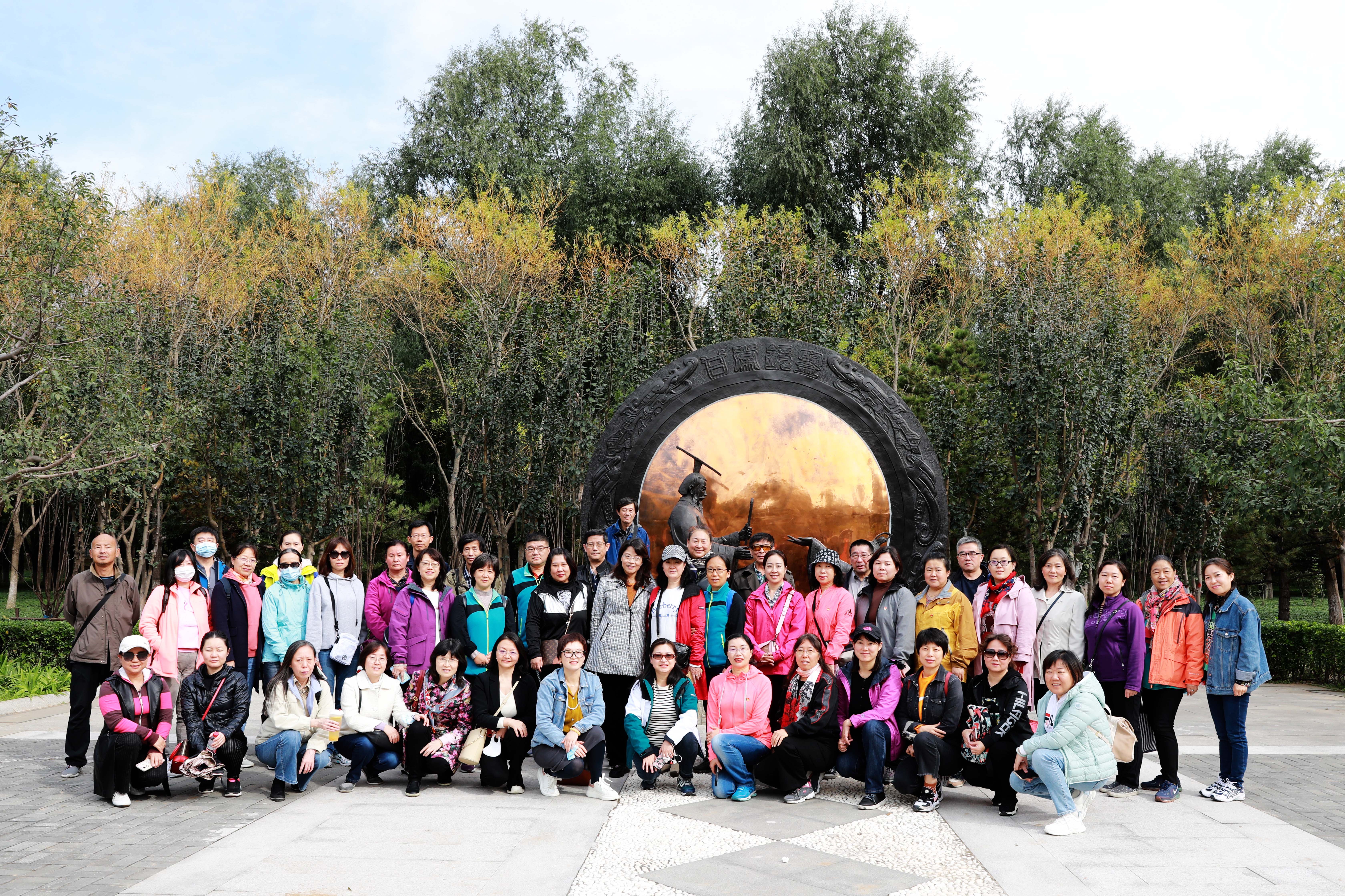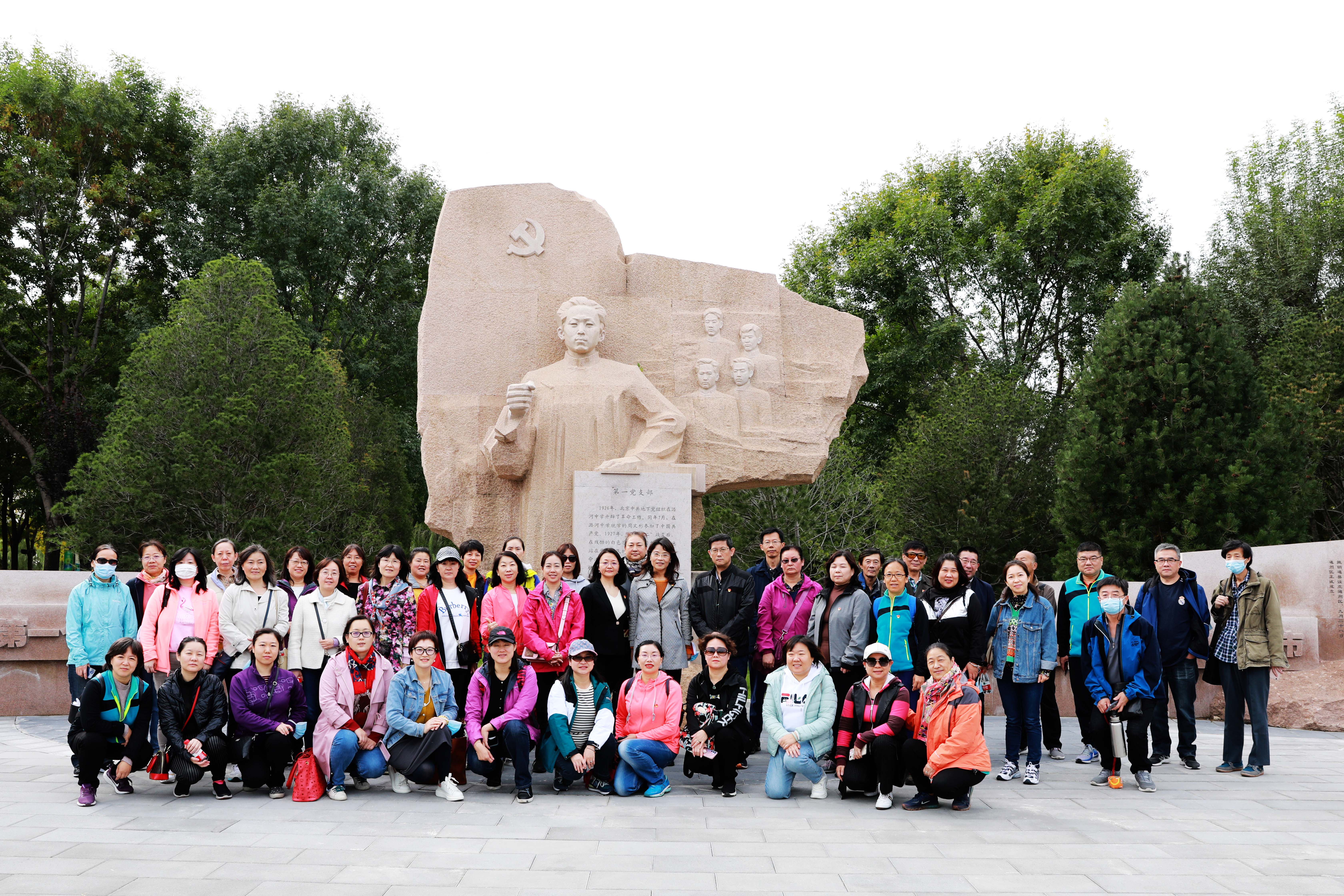 党建雕塑前合影