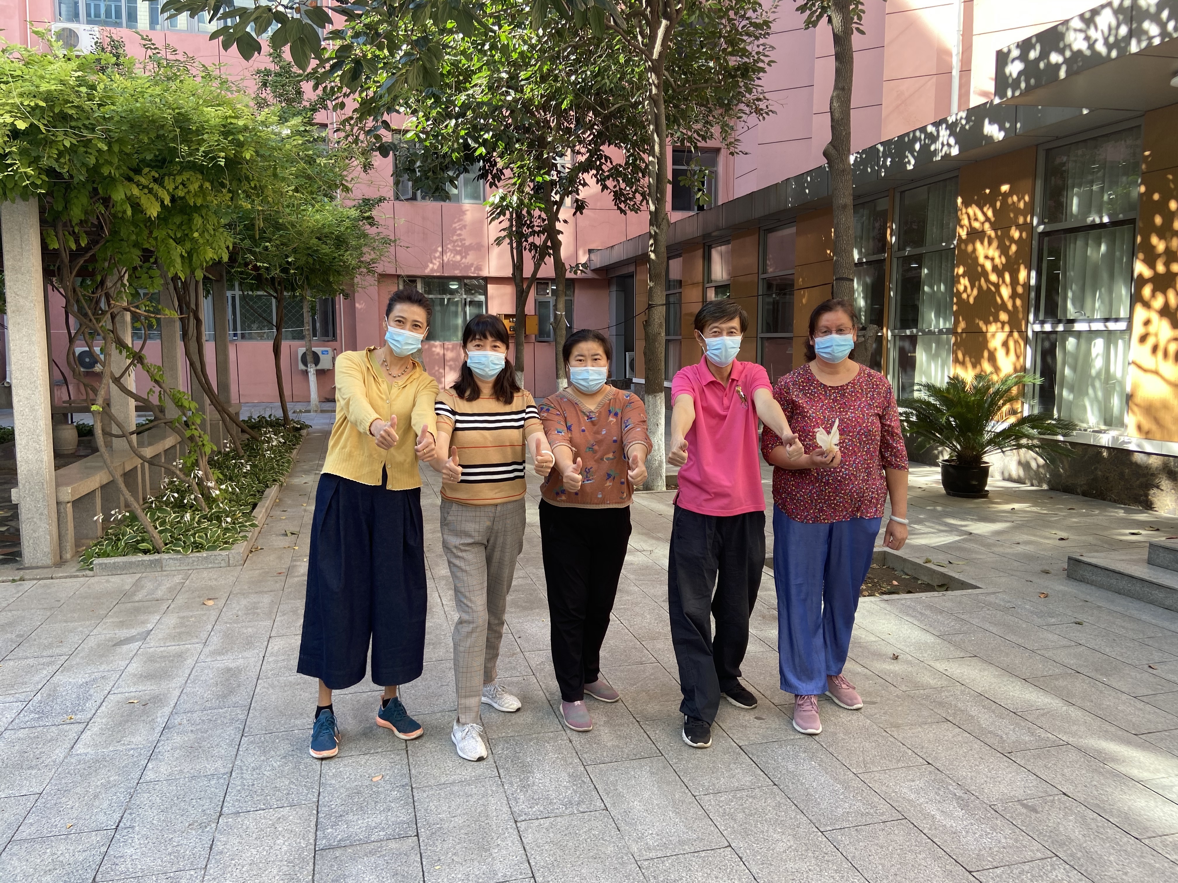 大家围在一起踢毽子,不仅需要技术水平,还需要大家的积极配合,在这个过程中增进了人际交往,对馆员的心理健康很有好处。