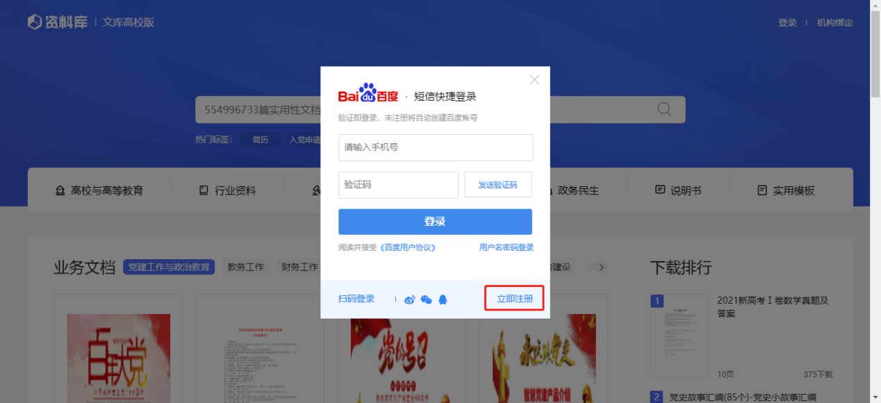1. 浏览器输入eduai.baidu.com,敲击回车,进入百度文库高校版,点击登录按钮,即可进入登录页面。