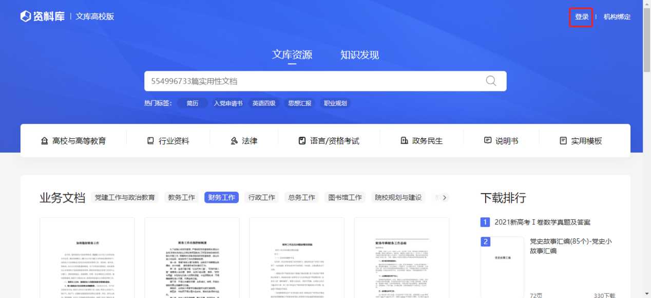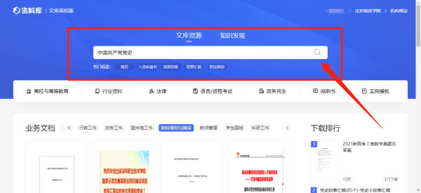 5. 回到百度文库高校版首页(eduai.baidu.com),通过搜索框属于所需文件的关键词。