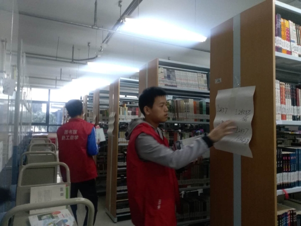 本学期开学以来,图书馆蒲黄榆分部积极招募特殊教育学院学生志愿者共同参与图书馆书库整理工作。这一号召在同学中得到积极响应,特殊教育学院2017级视觉传达设计、2017级计算机科学与技术专业的听障聋生报名踊跃。由于与听障聋生沟通不能用简单的手语来讲解图书分类的知识,指导听障生参与图书顺架、排架不是一件容易的事情。图书馆蒲黄榆分部崔延红等老师开展耐心细致的工作,用黑墨水笔做成卡片形式的板书,来解决沟通问题,并通过一次又一次的具体演示来介绍顺架、排架等程序,在分配任务时注重根据学生的特点安排分组。 通过图书馆老师的培训,同学们学习到图书分类的知识,以极大的热情投入到志愿服务活动中,出现了比、学、赶、帮、超的喜人现象!同学们互帮互教、互学互助,体现了集体合作精神;劳动的汗水收获了新书整齐上架带来的喜悦,体会到团结协作、共同完成任务带来的快乐。