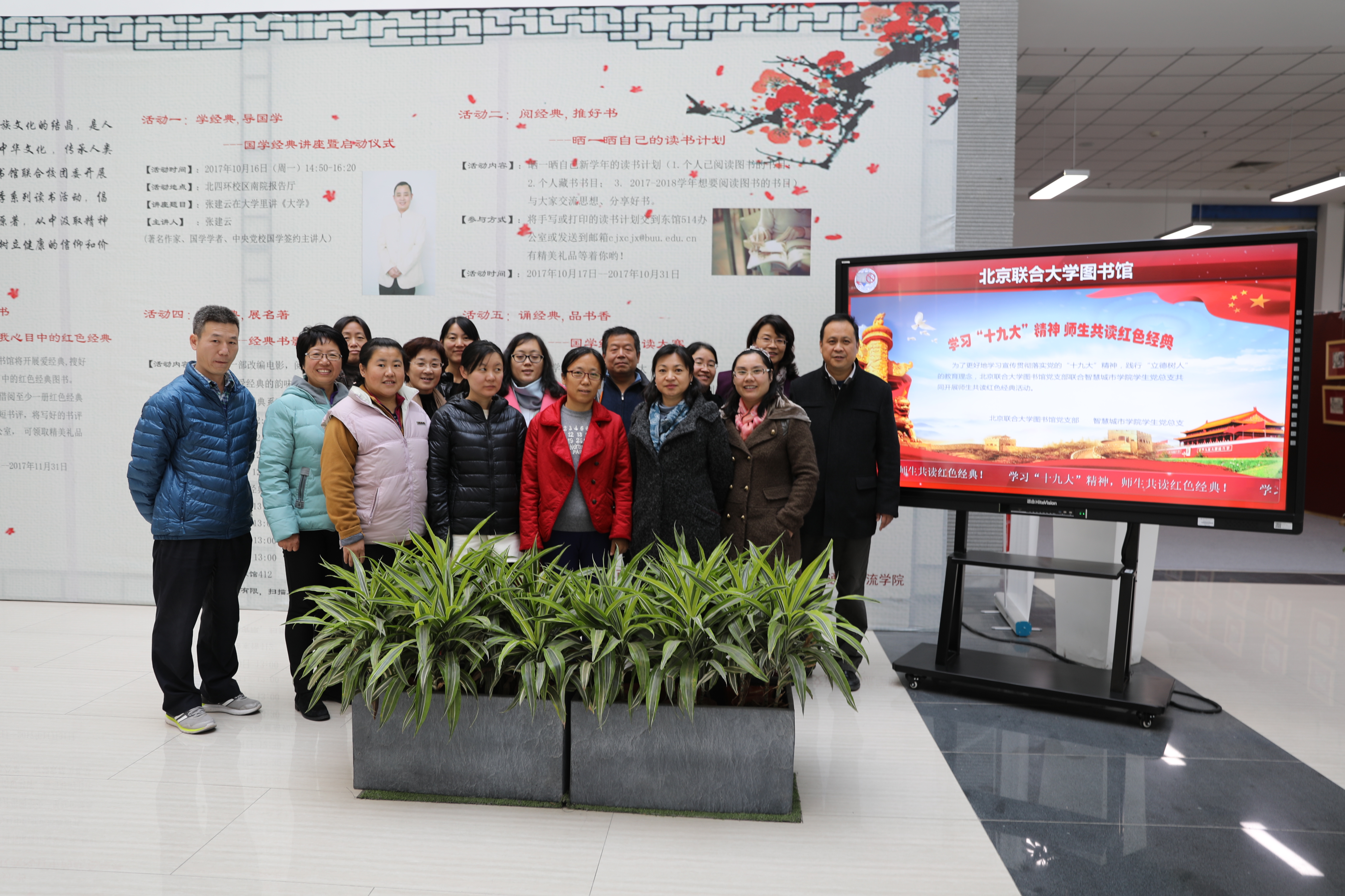 为了更好地学习宣传贯彻落实党的“十九大”精神,践行“立德树人”的教育理念,2017年11月15-16日,北京联合大学图书馆党支部与智慧城市学院学生党总支共同开展了“学习“十九大”精神 师生共读红色经典”活动 。图书馆党支部书记翟金忠、智慧城市学院党委副书记王希庆和图书馆、智慧城市学院近20名教师党员、60名学生党员参加了活动。