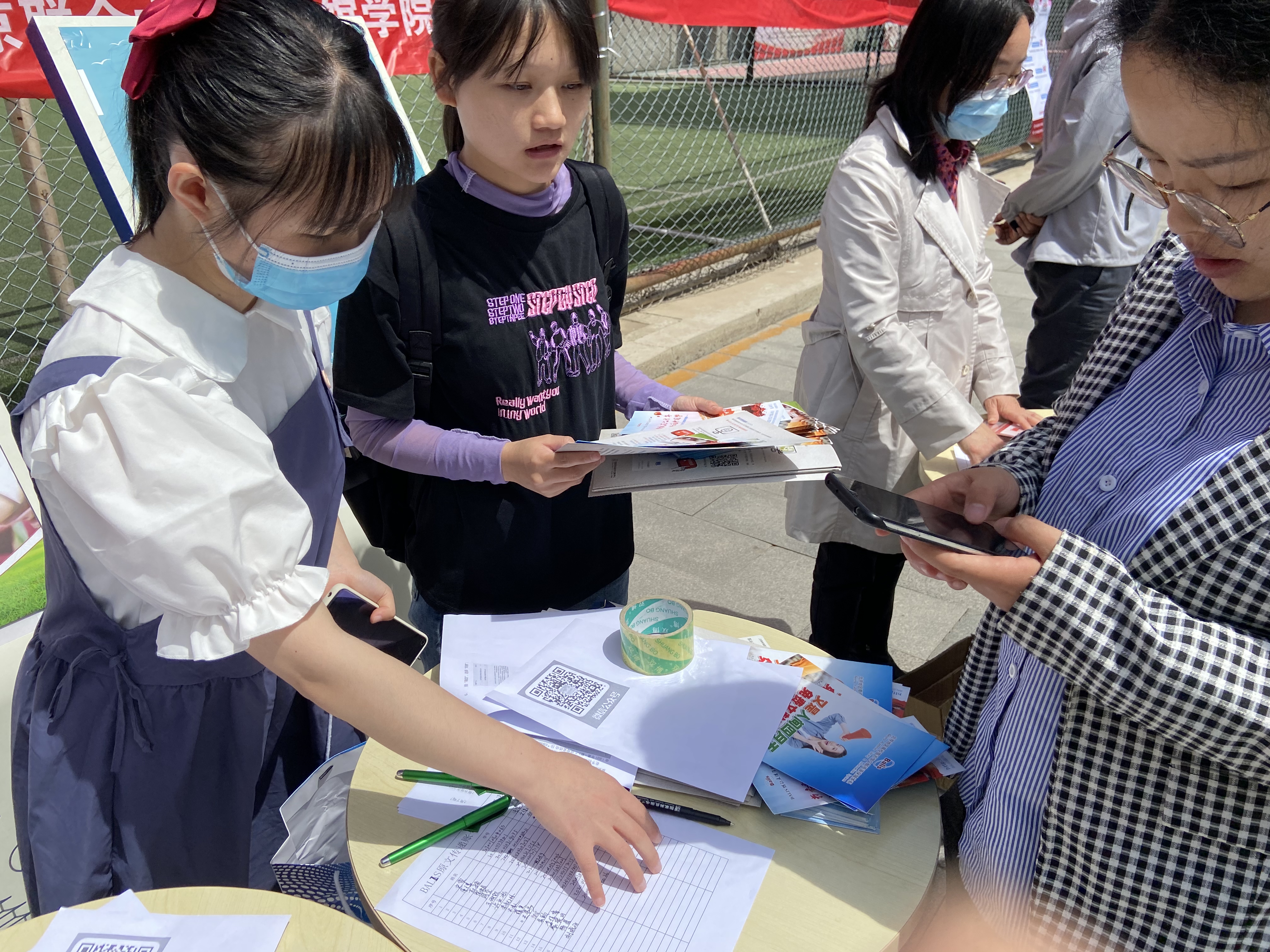 中午时分,下课的同学们陆续聚集到活动现场,三三两两的伫立在展台前, 认真浏览活动海报及宣传手册,时不时向宣传人员询问活动相关事宜,工作人员也非常热情的解答读者的问题;在原文传递和馆际互借展台前,同学们纷纷拿出手机,认真进行原文传递和馆际互借微信账号的注册;还有的同学翻看数据库资料,现场填写读者调查表,完成任务的同学们不忘挑选自己心仪的小礼物。同学们积极参加活动,现场十分火爆。工作人员头顶烈日,认真接待每一位来到活动现场的读者,希望通过现场解答方式,提升图书馆的资源利用率和用户满意度。