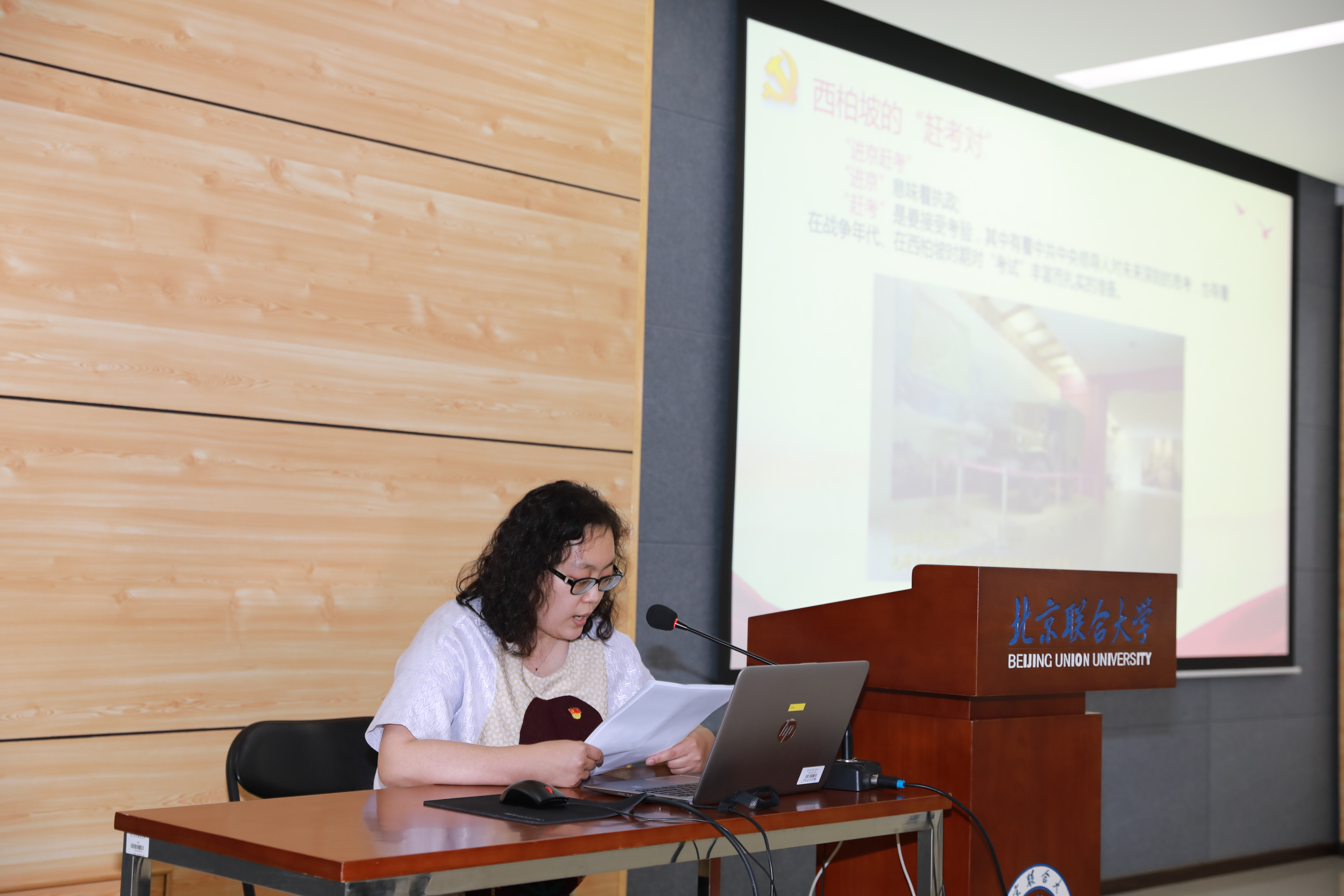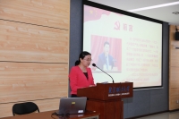 三支部委员李元稚以“毛泽东思想指导地位的确立”为题进行了宣讲。她围绕党的七大召开的背景、过程、决议及历史贡献进行了讲述,阐明毛泽东思想的确立过程与意义。