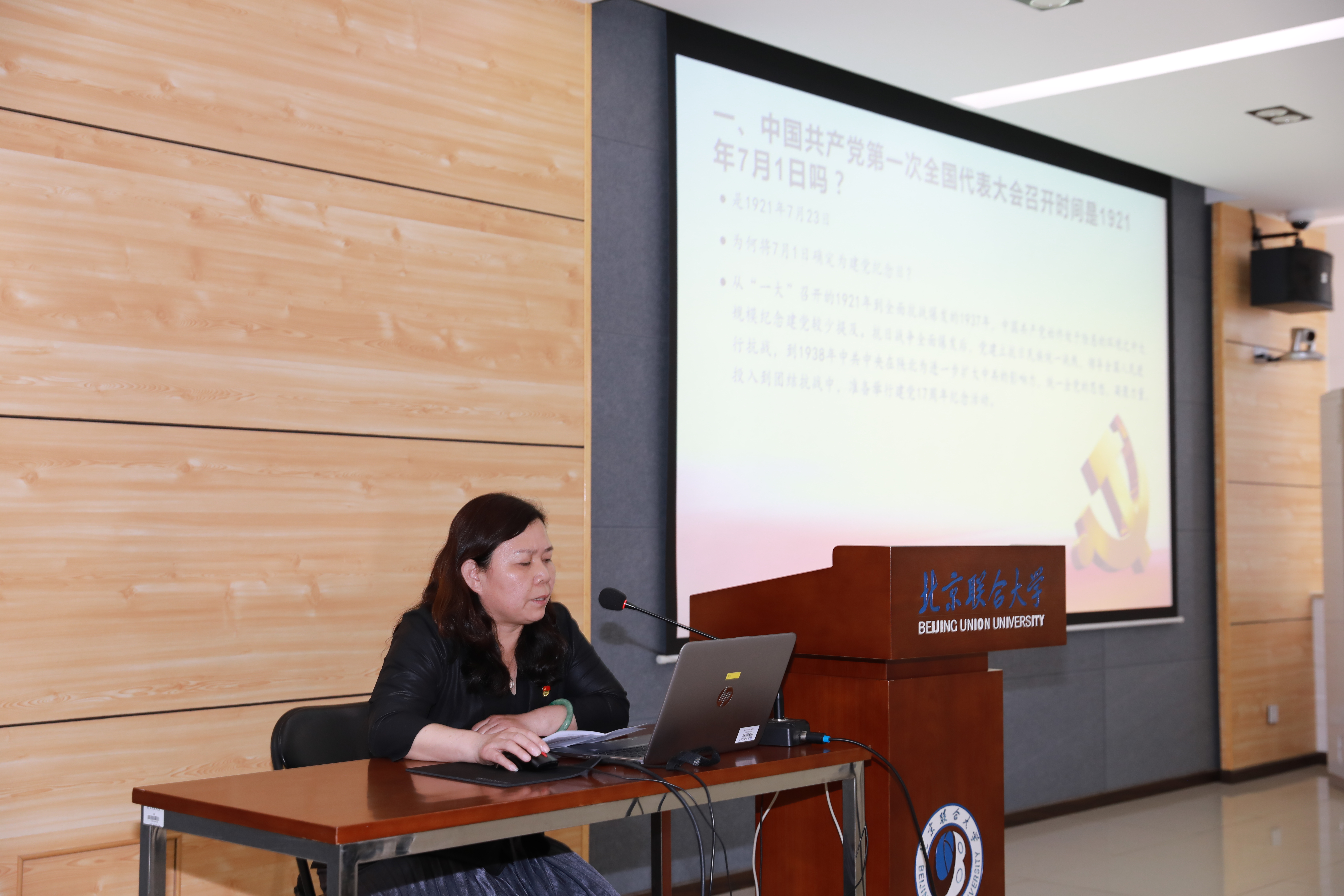 三支部委员路连英以“回顾党的‘一大’ 坚定理想信念”为题进行了宣讲。她讲述了党的一大召开及建党纪念日的由来,提出新时代党员要接过前辈们的旗帜,坚定理想信念,牢记初心,勇担使命,在新的征程中再造辉煌。