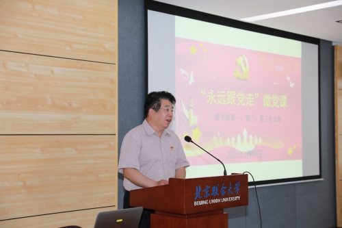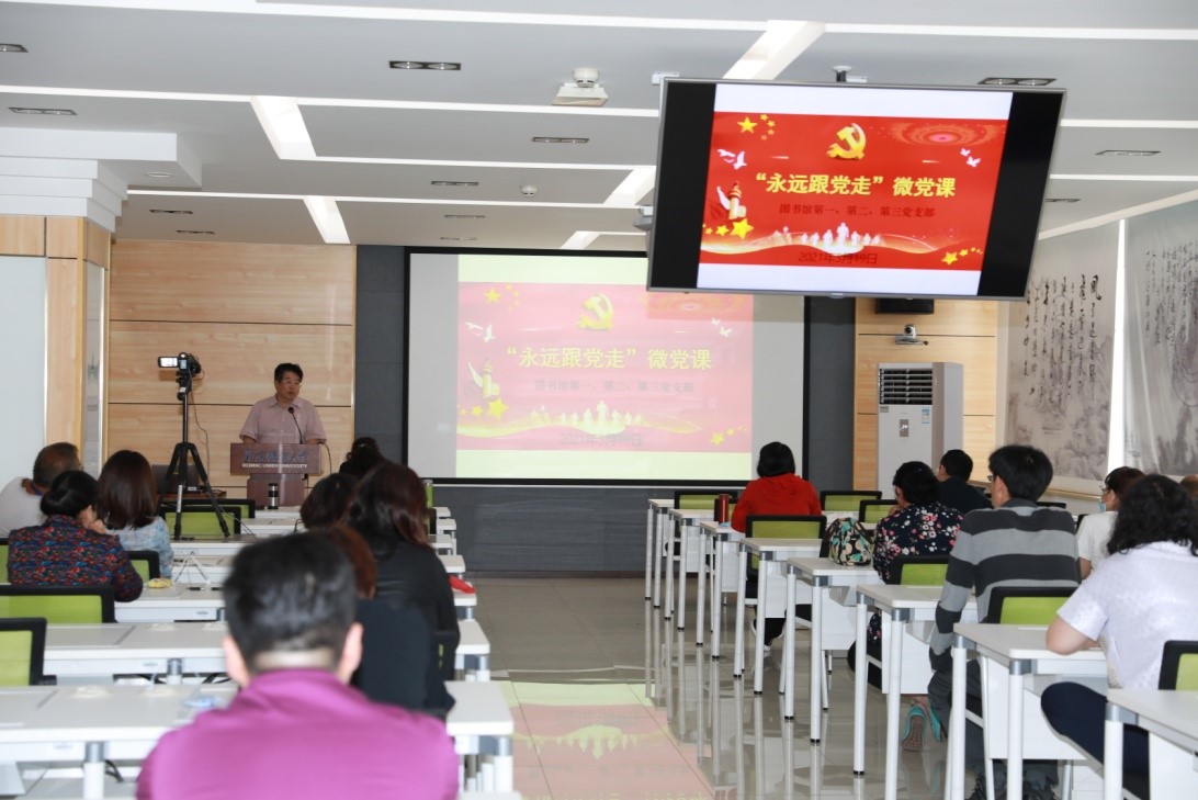 按照校党委《“永远跟党走”主题教育活动工作方案》要求,为加强党史学习,领悟中国共产党人的初心使命,加强党性教育、革命传统教育,图书馆党总支及各党支部经过精心安排与组织,于5月19日下午在理工与艺术馆电子阅览室开展“永远跟党走”微党课活动,图书馆第一、第二、第三党支部书记及支部委员共9人依次上台讲授微党课,图书馆领导班子及全体党员参加了活动。校党建督导组专家陈志刚书记到场指导并讲话。