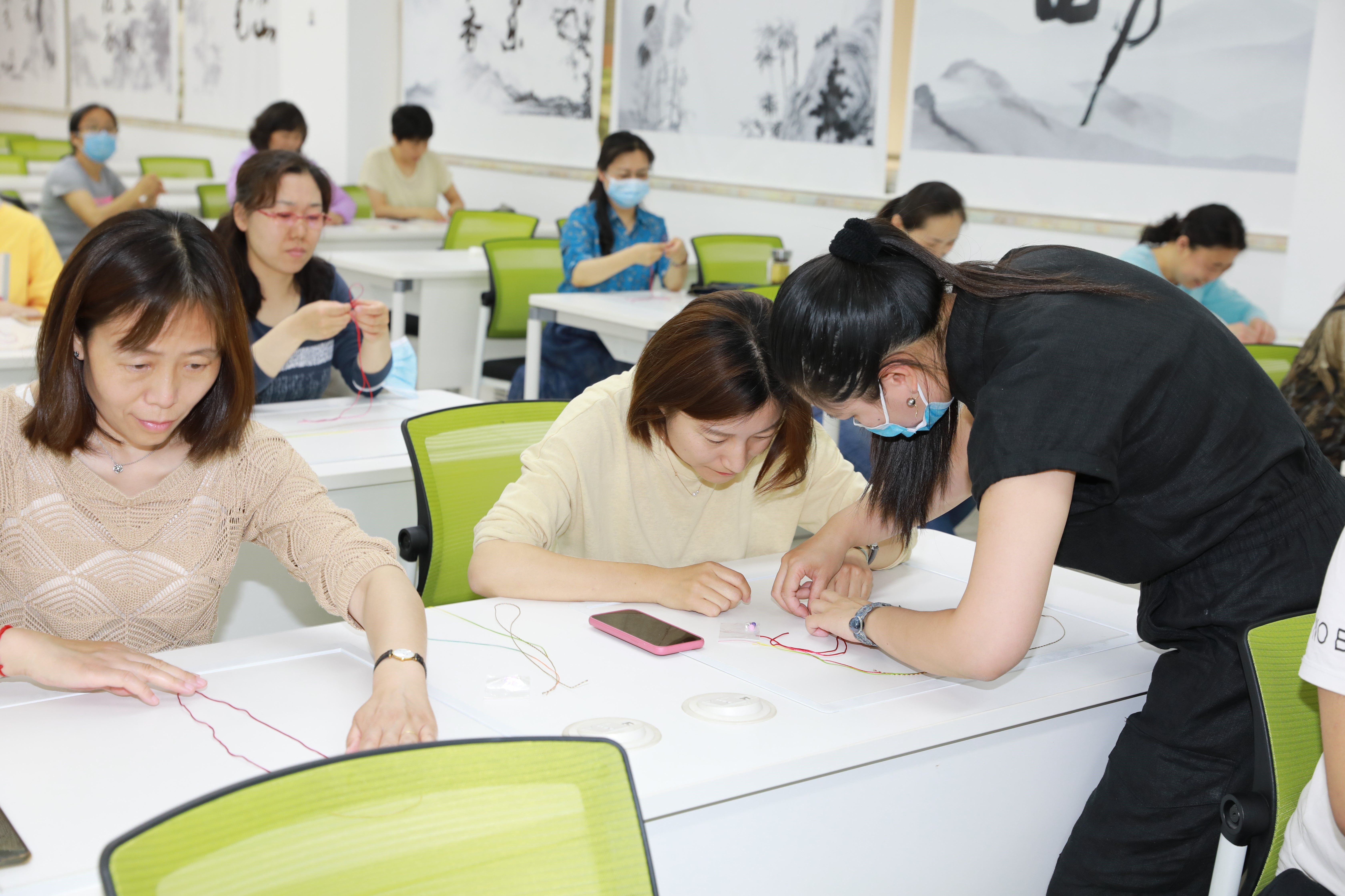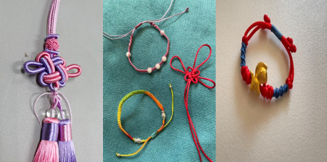 图书馆文献特藏部老师向师生介绍了中国结的起源及寓意,同时分享了与中国结相关的传统文化知识。随后专业技师详细介绍了中国结的种类、设计样式、制作方法等,图文并茂,生动形象。为庆祝“建党百年,祝福祖国”师生们共同手作实操,编制中国结;纪念中华传统节日——端午节编制五彩绳结,参与活动的师生都认真完成了令自己满意的作品。