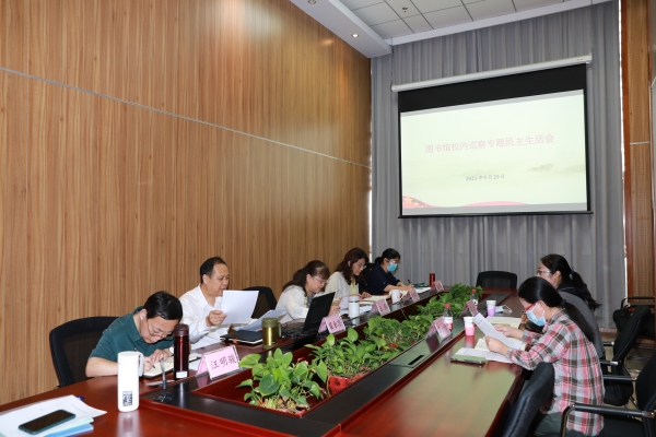 根据校党委、纪委办公室、巡察工作办公室关于对图书馆党总支巡察整改工作要求,图书馆领导班子于2021年9月29日下午召开校内巡察整改专题民主生活会,校纪检办公室、校党委组织部工作人员出席会议,图书馆领导班子全体成员参加会议。会议由图书馆党总支书记翟金忠主持。