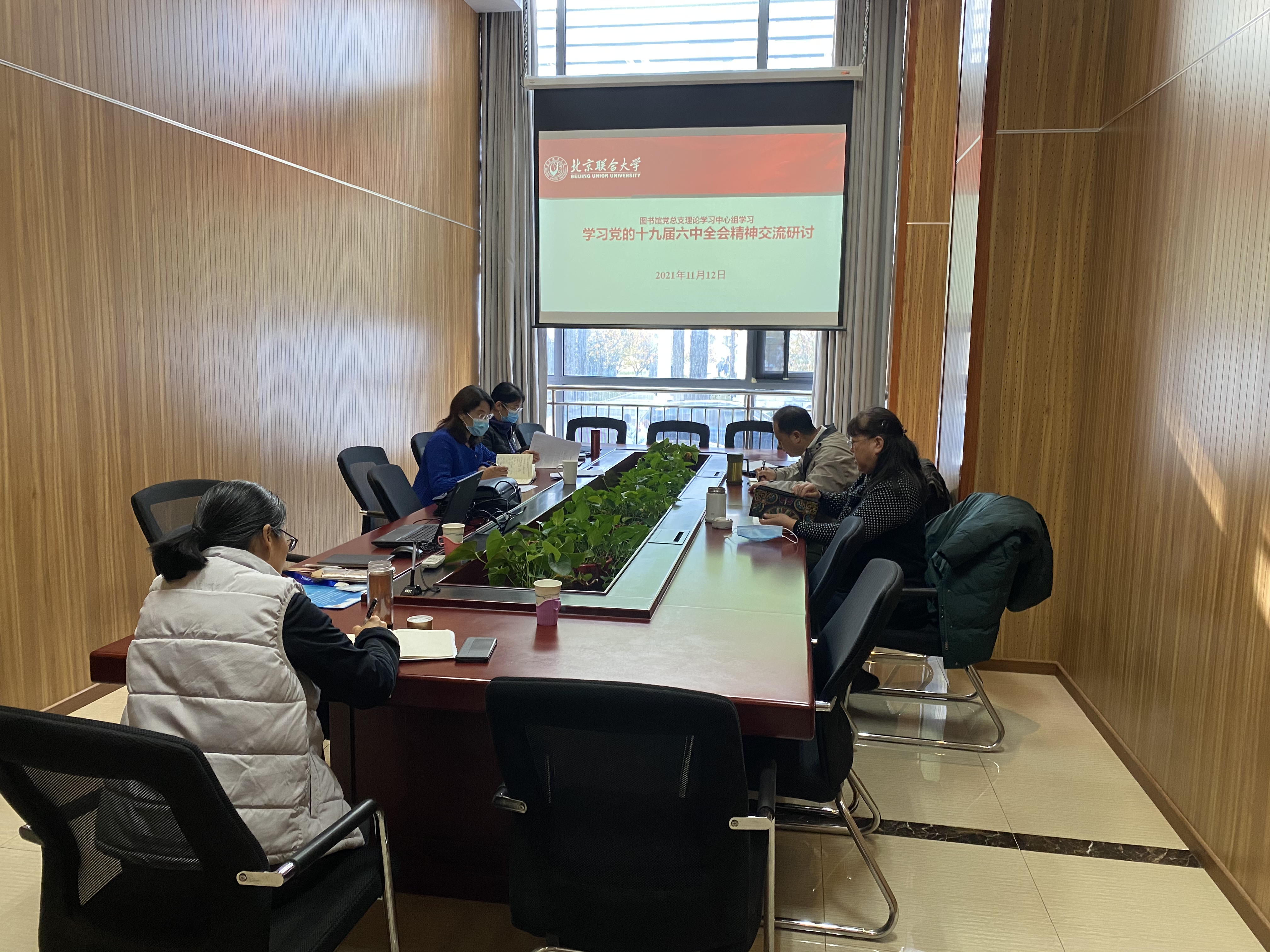 11月12日,图书馆组织全体教职工在各校区集中收看党的十九届六中全会新闻发布会直播,党总支理论中心组开展专题学习,各部门组织教职工学习党的十九届六中全会精神,交流心得体会,形成全馆学习贯彻十九届六中全会的热潮。