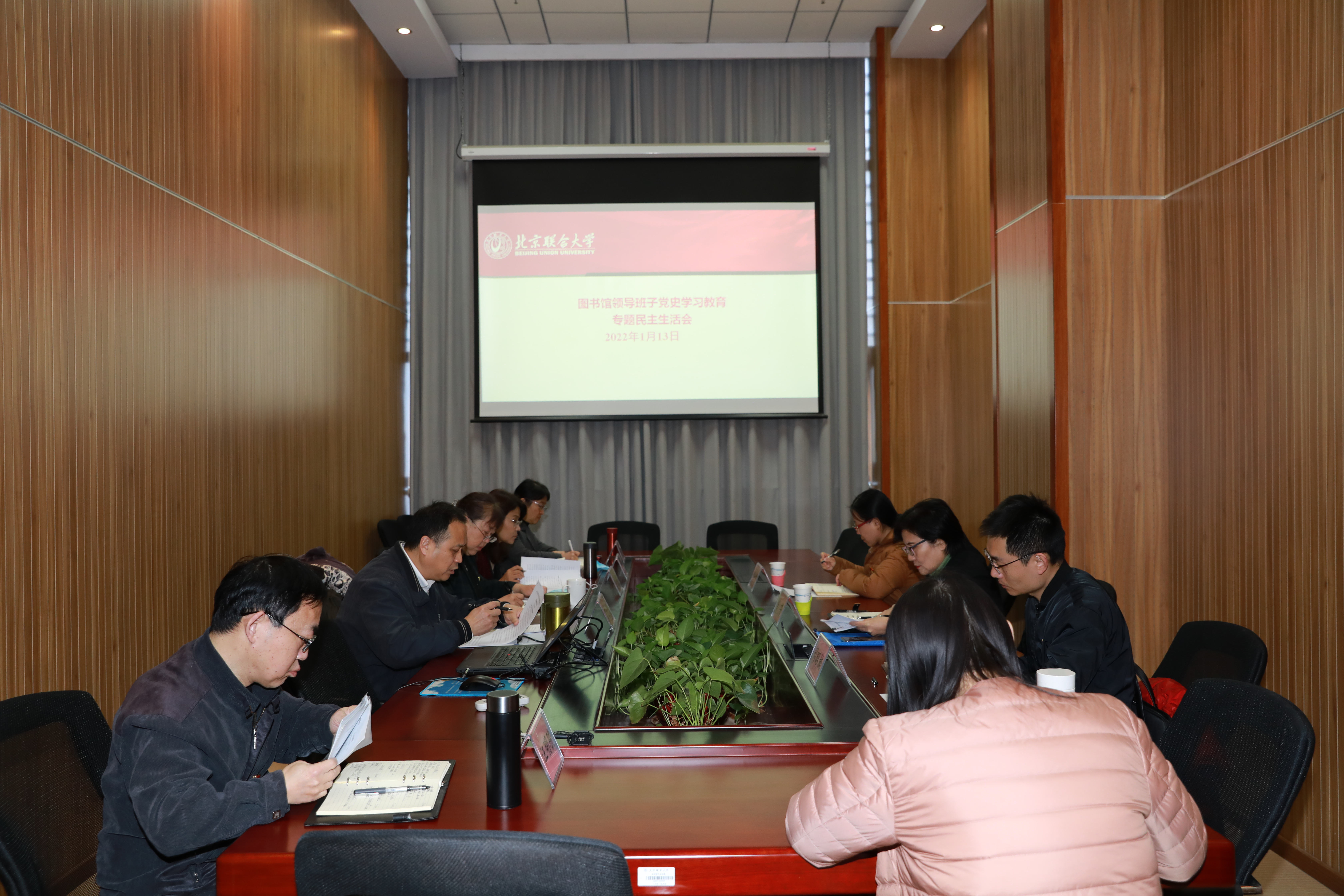 2022年1月13日上午,图书馆领导班子在图书馆人文馆0112研讨室召开了党史学习教育专题民主生活会,校党建督导组专家肖芳、组织部闵昭楠、纪委办李一宁老师出席会议,图书馆领导班子全体成员参加。会议由党总支书记翟金忠主持。