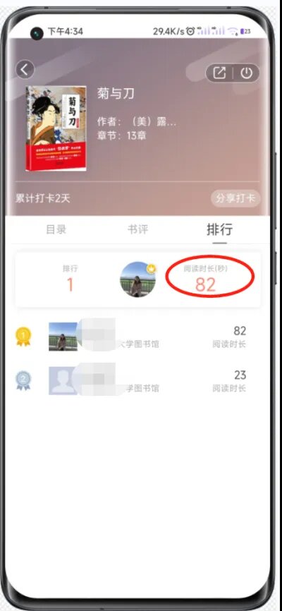 ③本次活动阅读时长以系统记录的时长为准,阅读时长统计第二天更新。同学们可以点击“排行”查看本人当前这本书的阅读时长。注意排行是以秒为计算单位,每本图书需要至少阅读时长30分钟,需要达到1800秒。阅读同本书不重复计算册数。