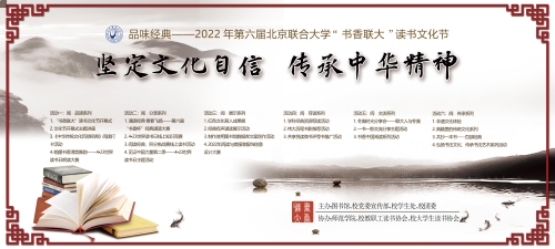 在线上教学期间,图书馆、校党委宣传部、校学生处、校团委联合举办品味经典—2022年第六届北京联合大学“书香联大”读书文化节,极大丰富了大学生文化生活。文化节主题是“坚定文化自信、传承中华精神”,推出“阅﹒品读”“阅﹒分享”“阅﹒展示”“阅﹒荐读”“阅﹒交流”“阅﹒传承”六大系列,开展丰富多彩的线上读书文化活动和电子资源推荐。4月22日,在第27个“4?23”世界读书日来临之际通过北京联合大学直播平台举行了读书文化节启动仪式,2000余名师生参加了活动。在启动仪式上,播出了商务学院副院长陈建斌、旅游学院常务副院长严旭阳录制的读书寄语视频,对2021年度“读书之星”和“书香班级”进行了表彰,特邀国家图书馆古籍馆副馆长谢冬荣研究馆员以“亲近古籍,感悟传统文化的魅力”为题作了主题讲座。在抗击疫情期间,图书馆开展了“诵读经典 青春飞扬”——北京联合大学第六届“书香杯”经典诵读大赛,“翰墨书香 清音雅韵”朗读大赛,“阅见美好,悦在图书馆”——2022年“图书馆杯”主题图像创意设计征集,我见证中国力量第二季——第27个世界读书日主题活动,“书香中国”“读书,让我们的世界更丰富”为主题 “书声琅琅”听书问答大挑战、“四月浸书香,我为读书狂”阅读马拉松大奖赛 “过目不忘”速记大挑战系列线上活动,《中华传统文化百部经典》阅读打卡,“共享悦读”微书评荐书推广,“百部经典·百题大闯关”传统文化知识竞赛,“光辉岁月·影映征程”红色荐影,“一书一影”主题系列活动,沉淀自我、静待花开 ——“记忆帖”制作线上征集,“品国学·养正气·润人生”国学知识在线竞答,联图创课直播第八届“互联网+”大学生创新创业大赛备赛解读,“用生活所感去读书,用读书所得去生活——中外名家谈读书”展示活动,“疫情防控常态化 坚守防线不放松”主题连环画创作推广公益行的系列连环画作品线上展览——《向抗击病毒最可爱的人致敬》、劳动者的艺术——中国民间艺术线上展览。其中, “书香杯”经典诵读大赛收到学生提交的500多个朗读作品,“一书一影”主题系列活动共有2000多人次参加,活动点击量15000次。