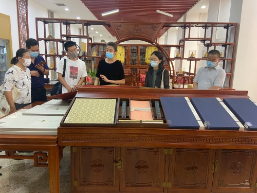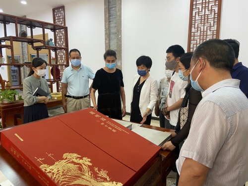 2022年7月4日下午,北京市海淀区宣传部文化中心建设科高洁、海淀区文化发展促进中心叶亮清、曹劲松、韩笑以及恒信东方文化股份有限公司孟楠、彭季、李晓波、徐宝宏、李楠等一行九人在应用文理学院院办老师的陪同下参观了三山五园文献馆,图书馆党总支书记翟金忠、学院路校区分部主任聂延平等老师陪同参加了调研活动。尚松梅老师介绍了文献馆的藏书,重点对三山五园四十景图珍藏进行了讲解。双方就合作共建利用馆藏资源进行了探讨。