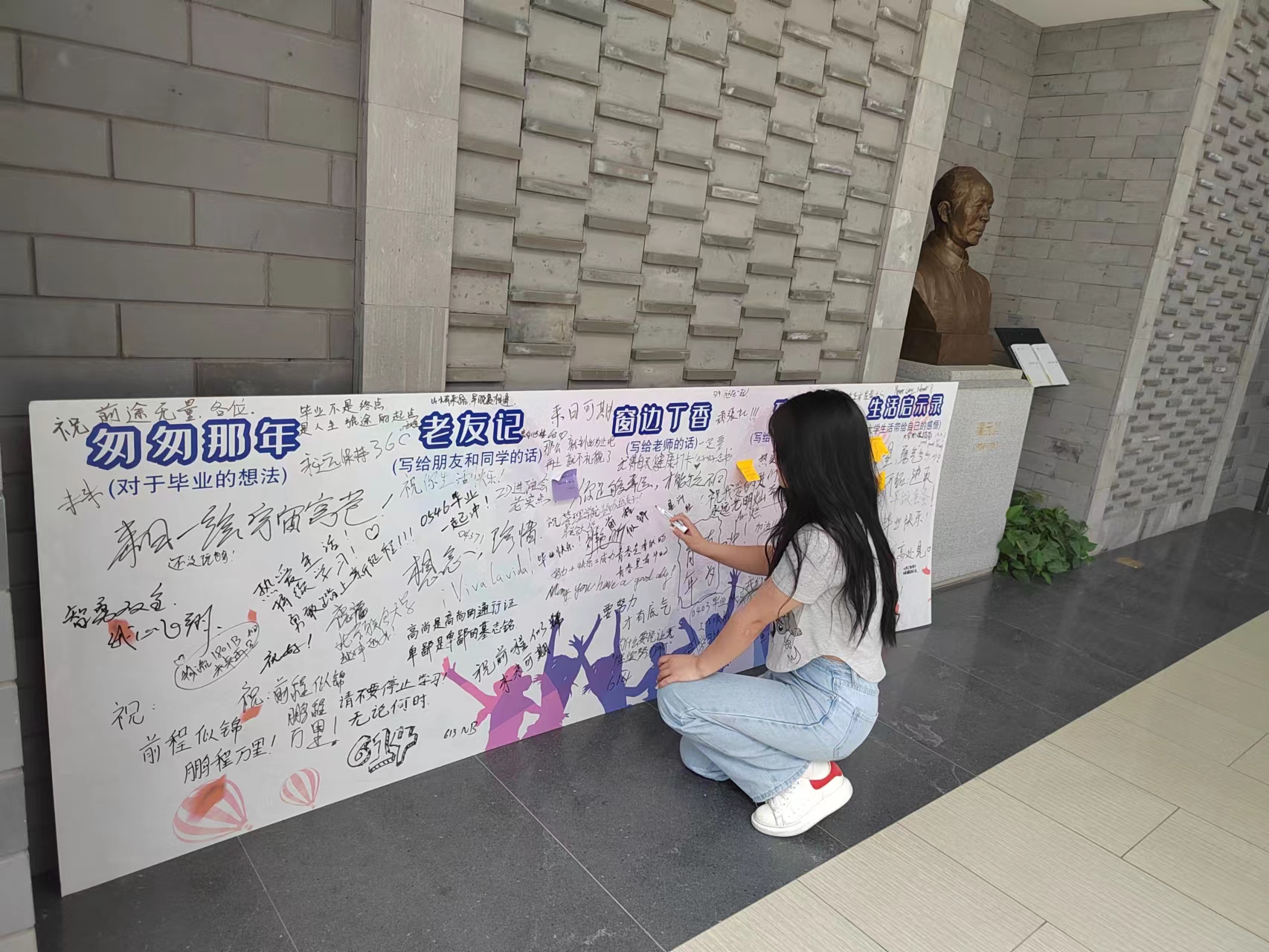 毕业生中部分图书馆勤工助学团队成员以及大学生读书协会成员、校友,以“读书启智明理做人”为题写下了给新生的留言祝福,并为图书馆发展建言献策。部分校友和毕业生将在校期间创作的文学作品和书法作品转交给图书馆保存。