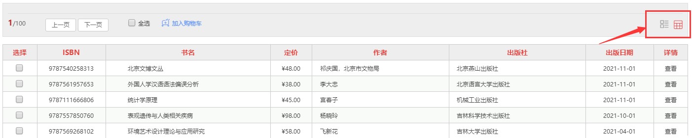1.1.平台可按图书的出版时间、定价排序。也可按价格区间、出版时间段、重点图书【即图书馆关注的重点出版社】进行筛选。