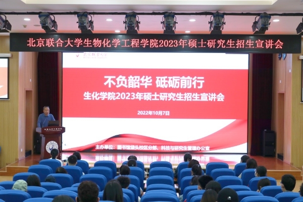 本次宣讲会旨在帮助考生深入了解北京联合大学生物化学工程研究生培养情况和研招政策,及时获取2023年研究生招生信息,帮助学生们更好的做好学习生涯规划。生物化学工程学院常务副院长赵卓结合个人经历强调了读书的重要性,并对参会学生提出了殷切的期望,鼓励同学们要利用好青春时光,努力学习,不断提升自我。食品科学与工程学科带头人王锋、土木水利学科带头人马晓钧、科技与研究生培养办公室蒋丹分别在学科特色及优势、师资力量、科研实力、研招政策等方面进行了全方位介绍。