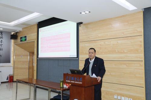 翟金忠从“深刻领会党的二十大的重大意义,全面学习、准确把握党的二十大报告,学习贯彻党的二十大精神,推进‘文化育人’‘服务育人’工作”三个方面,结合“两节两季”文化育人平台建设的生动实践给大家上了一堂生动的党课。他阐述了党的二十大的重大意义,运用生动的事例讲解了中国式现代化的科学内涵、我国独立自主的和平外交政策、实施对外开放的重大意义等。提出要按照校党委的部署要求,全面深入学习贯彻习近平新时代中国特色社会主义思想和党的二十大精神,深刻领悟“两个确立”的决定性意义,增强“四个意识”、坚定“四个自信”、做到“两个维护”。坚持不懈用习近平新时代中国特色社会主义思想凝心铸魂,落实立德树人根本任务,围绕“大思政课”建设,大力推进“文化育人”“服务育人”工作,以社会主义核心价值观为引领,大力发展社会主义先进文化,弘扬革命文化,传承中华优秀传统文化,用好红色资源,传承红色基因,赓续红色血脉,促进校园文化建设。