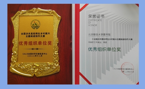 为深入贯彻“十四五”规划提出的“全面推进乡村振兴”战略部署,落实中央农村工作会议精神,CALIS全国农学文献信息中心组织了以“品阅乡村·智惠三农”为主题的全国涉农高校师生乡村振兴主题阅读创作大赛。经过大赛组委会评审,我校图书馆选送的商务学院姚瑶,师范学院路慧、焦禹彤三位同学分别获摄影作品组一、二、三等奖,应用文理学院贾龙延同学获图书导读书评组二等奖,我校图书馆获得优秀组织单位奖。