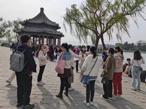 春光明媚,草长莺飞。2023年3月31日下午,图书馆学院路分部组织来自历史系、新闻系、城市科学系的15名同学开展“三山五园”之颐和园走读体验活动。走读路线从北宫门始,经万寿山,至西堤铜牛,终抵十七孔桥。穿行在“三山五园”遗迹中的师生,在春和景明中触摸历史,感知到深厚的历史积淀是中国在世界百年变局中的定力之源,是中国式现代化进程的精神之魂。
