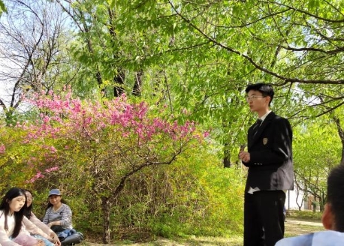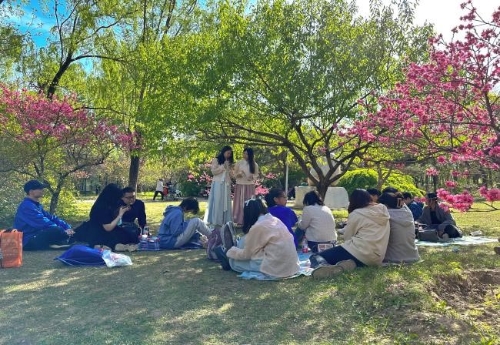 4月16日,图书馆读者活动部组织校大学生读书协会与联合扬帆社团在奥林匹克森林公园进行社团共建,本次活动是“春天诗歌月——读给春天的一首诗”的线下活动。草绿风暖,野芳竞发,走读踏青,共抒诗情。两个社团的18名同学边走边叙,以诗会友,感受春天。