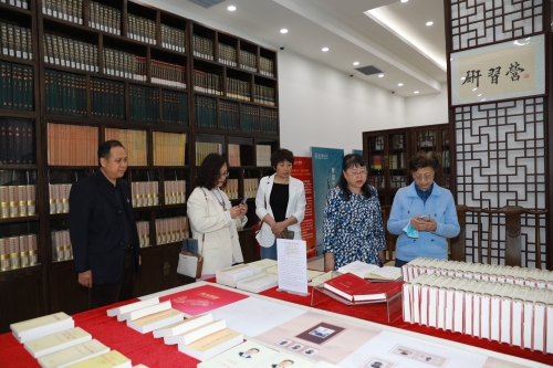 刘淑娥馆长一行参观考察了联大文库“学习贯彻习近平新时代中国特色社会主义思想主题教育图书展”、图书馆文化育人实践成果展、中国非遗传统技艺学生实践作品展、教师研修室、藏书阁、元堃书院、研讨室等。我校图书馆馆长王彤对图书馆空间布局与功能、馆藏古籍保护、学科服务与资源利用,以及图书馆围绕落实立德树人根本任务,开展文化育人、服务育人工作进行了介绍。