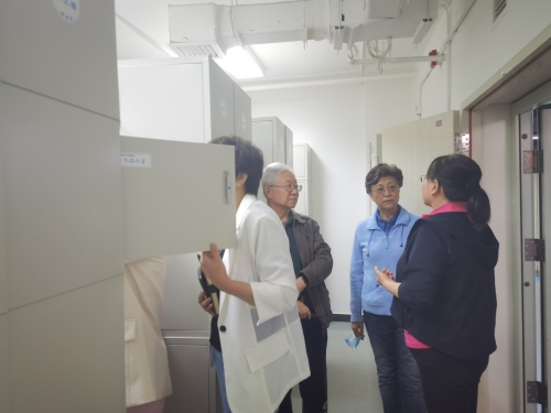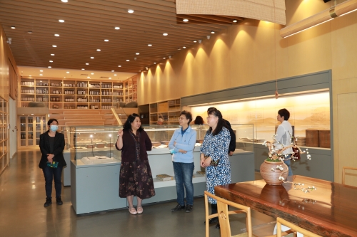 在档案(校史)馆,刘淑娥馆长一行参观了校史馆、2017-2022年度档案事业巡礼展以及文书、人事、会计、基建档案库房和专题资料库。姜素兰馆长介绍了我校档案工作整体情况、各门类档案管理的具体做法、史志年鉴编研思路及取得成果,双方还就具体业务工作深入交流。