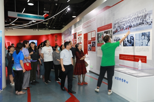 北京联合大学图书馆一行参观了 “信仰的高光”——科学家主题展、“众心向党 自立自强——党领导下的科学家”主题展、 “小球大世界”主题展教区,观看了球幕电影《太空探索》。北京科学中心副主任霍利民介绍了各展区功能及展示主题、核心内容,工作人员对展出内容进行了详细讲解。“信仰的高光”——科学家主题展通过图片、实物等珍贵史料,详细展现了“奋斗的桥”茅以升、“追光者”王大珩、“糖丸爷爷”顾方舟、“书生校长”陈佳洱等科学家的奋斗历程,感受他们的信仰追求和精神之美。“众心向党 自立自强——党领导下的科学家”主题展以中国共产党的坚强领导和伟大指引为主线,以科学家精神内涵为框架,通过大量珍贵的照片和实物集中展示中国共产党百年奋斗征程中科技工作者“坚定跟党走,永远听党话”的生动历史,展示了航天精神、抗疫精神及2022年北京最美科技工作者等内容。通过参观学习,追寻党领导下的科学家科技报国、兴国、强国的奋斗足迹,深刻学习领会新时代科学家精神;了解老一代科学家在工作中爱党爱国的感人故事;感受高新技术带来的关于世界天文学发展历程的演示。