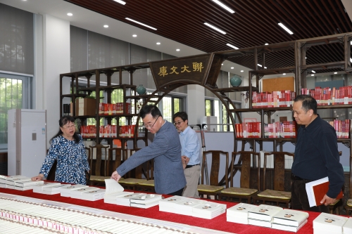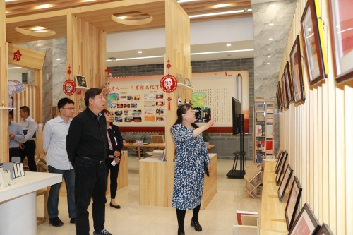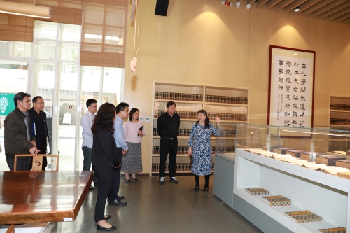 校领导一行走访考察了人文馆的藏书阁、元堃书院、约翰·拉贝北京交流中心,理工与艺术馆的教师研修室、联大文库“学习贯彻习近平新时代中国特色社会主义思想主题教育图书展”,以及大厅一层的图书馆文化育人实践成果展、中国非遗传统技艺学生实践作品展等。在考察中,馆长王彤汇报了图书馆空间布局、功能,馆藏古籍保护与利用,及图书馆文化育人工作。