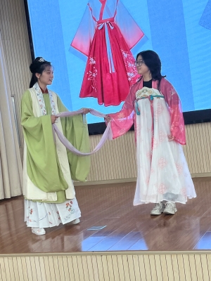 活动设置了汉服知识分享,唐、宋、晋、元汉服展示,现场试装,交流体会……等环节。同学们穿着华美的汉服,通过丰富的形式,在学习过程中体验、传承,展示着中华文化之美。